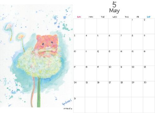 『かわいい動物』をテーマに各月の絵を描きました。毎月カレンダーをめくるのが楽しみになればと思っています。